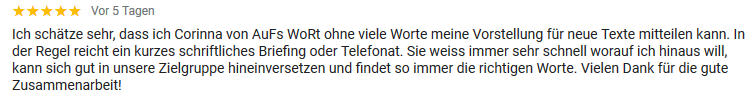 O-Ton eines Auftraggebers über AuFs WoRt Textvorschläge