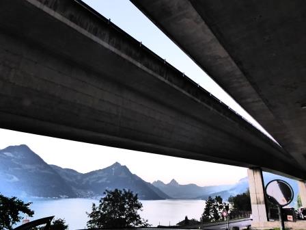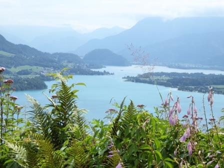 Das verwinkelte St. Gilgen lässt uns unsere Unterkunft suchen. Gleich mehrmals fahren wir an der kleinen Mozart-Statue vorbei. Freude beim Ankommen: Die nächsten Tage nächtigen und erleben wir direkt an der Wolfgangsee-„Waterfront“ und am schönen, legeren Strandbad mit Zugang zu Umkleiden, Badesteg und Sprungbrett rund um die Uhr sowie Café-Restaurant bis 21:30 Uhr. Gegenüber Minigolf und Pitpat und der Beginn des beschaulichen und kurzen Pfades zum Hafen und Zentrum. Wir erkunden in den nächsten Tagen, der Mondseestraße folgend, die Idylle von Brunnwinkl und Fürberg am tiefgrünen Wolfgangsee mit beeindruckender Trinkwasserqualität. Wir klettern zum Berggasthof Weisswand hinauf und lernen den bezaubernden benachbarten Fuschlsee schwimmend kennen.