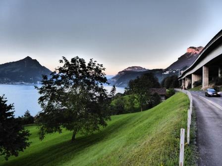 Endlich wieder Grenzen überqueren. An Basel vorbei, vor Zürich rechts abbiegen, der Sempachersee, der Vierwaldstätter See und dann – der Gotthard Tunnel, der einem ohne Klimaanlage jedes Mal wie eine Fahrt in die Hölle erscheint, und dessen Ende immer wieder mit Spannung erwartet wird. Gibt es auf der Südseite Regen, scheint die Sonne? Es ist himmlisch! Bei bestem Wetter fahren wir an Bellinzona vorbei und biegen rechts ab zum Lago Maggiore. Dann die wunderschöne Fahrt entlang des Ufers, die sich in den letzten vierzig Jahren nur marginal verändert hat. Das Wasser des Sees glitzert in der Sonne. Die Tage bestehen aus Balkon-Aussichten, Rotwein-Genießen, Berggipfel-erklimmen und Pool-Runden-drehen.
