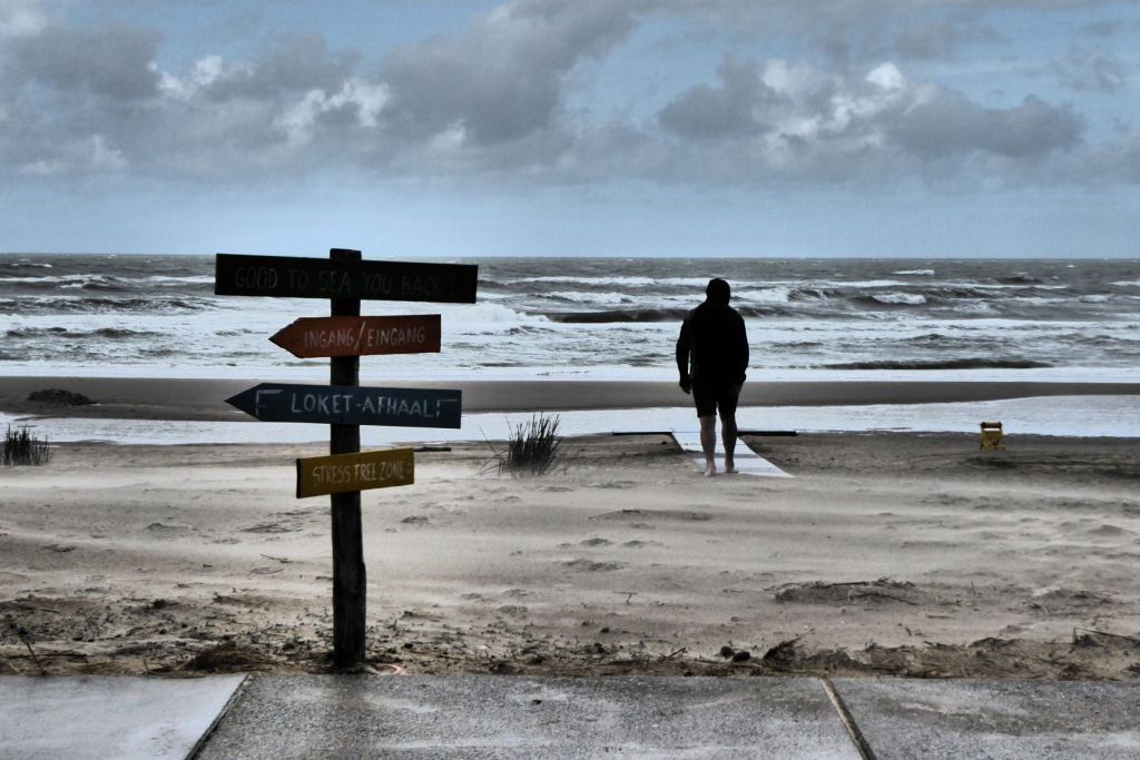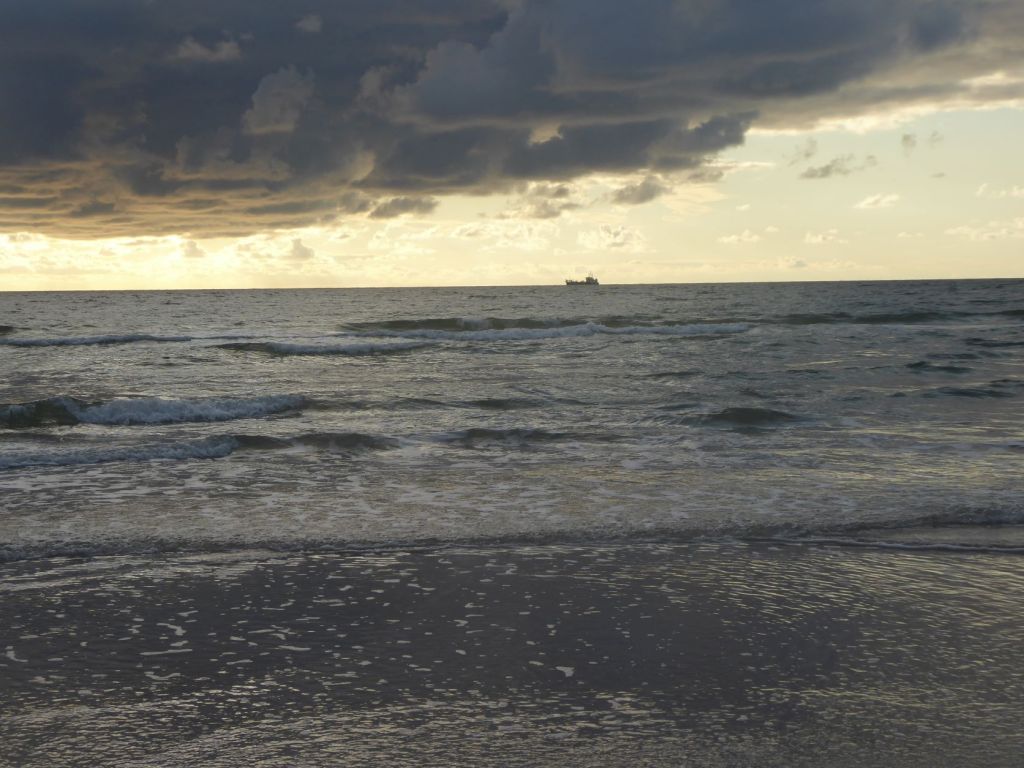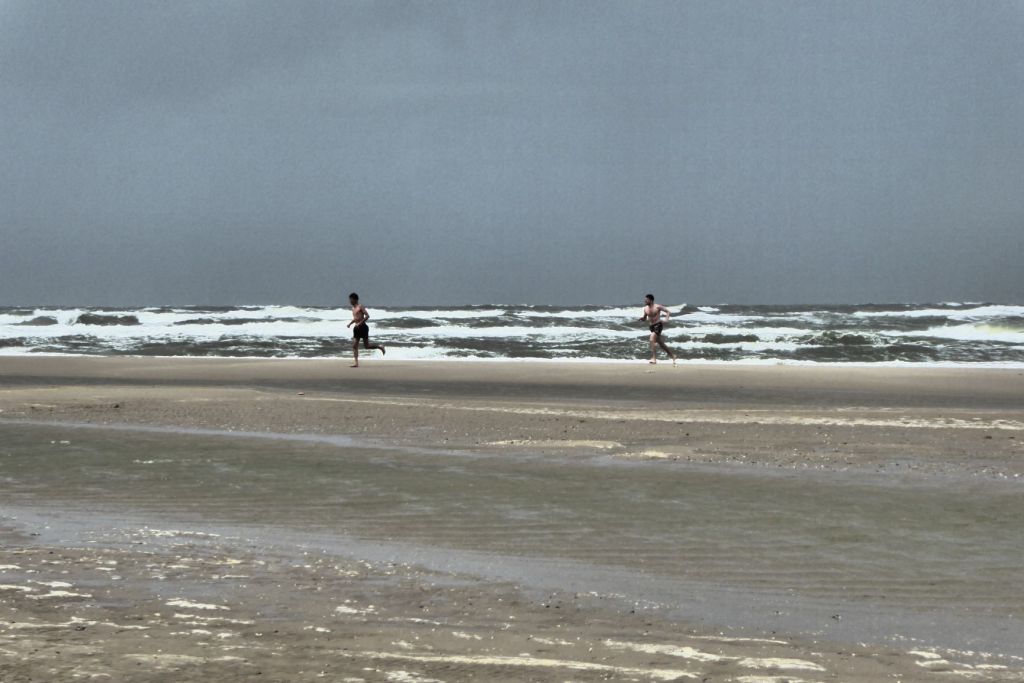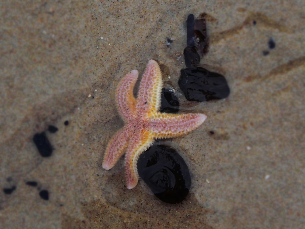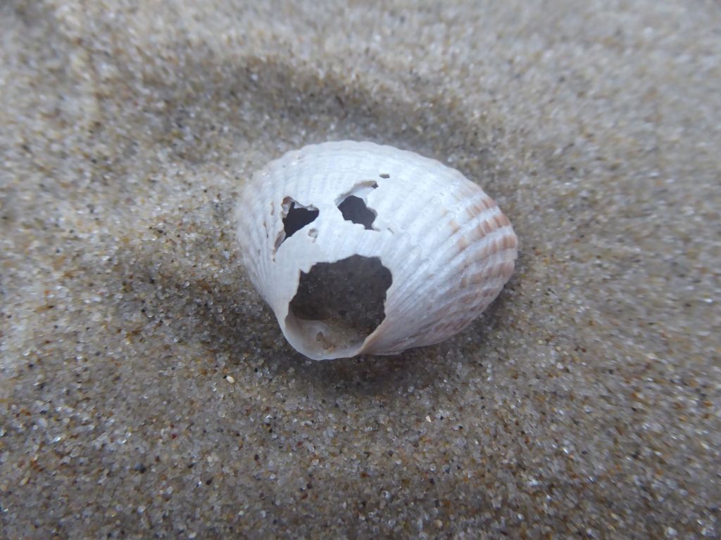 Wir ziehen in unser Ferienhaus in den Dünen ein und begrüßen die großäugigen Nachbarn. Unzählige Kaninchen hoppeln über das Areal. Möwen beäugen uns seitlich mit gelblichem Blick. Die Nordsee ruft unüberhörbar. Schleunigst zum Strand. Wir parken unser Auto auf dem Parkplatz vor den Sanddünen. Der Wind pfeift und verweht uns das Haar. Je weiter wir dem Meer kommen, desto mehr schmirgelt der Sand an den kurzbehosten Beinen. Nur die Rettungsschwimmer vergnügen sich heute im turbulenten, aber seichten, Wellenbad. Kurz darauf die Rote Flagge als Warnung. Kitesurfer rasen und springen über die Schaumkronen. Das eindrücklichste Urlaubserlebnis: Ein Strandspaziergang nach starkem Sturm. Seesterne… die weißen, hauchdünnen Hüllen von Seeigeln… schillernde kleine Sprotten… Krabben… Muscheln en masse. Die ungestüme Nordsee zeigt anschaulich, was in ihr steckt.