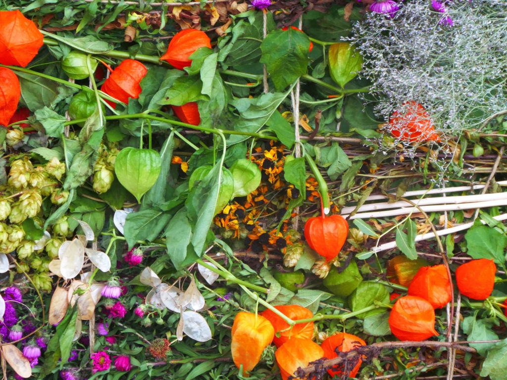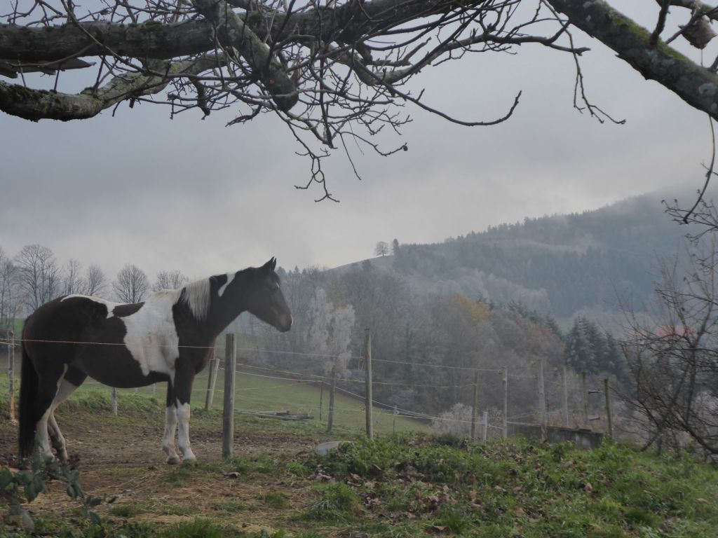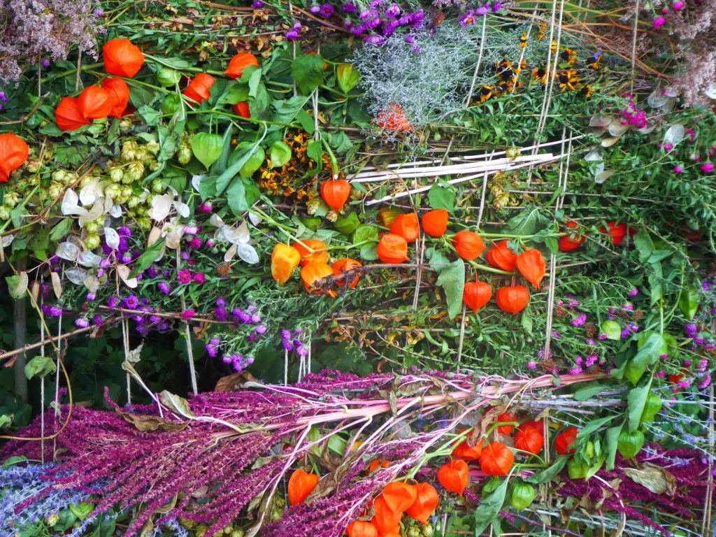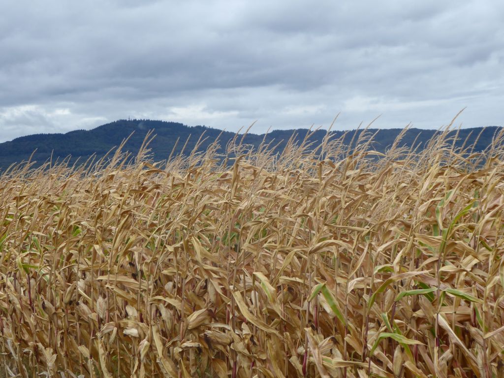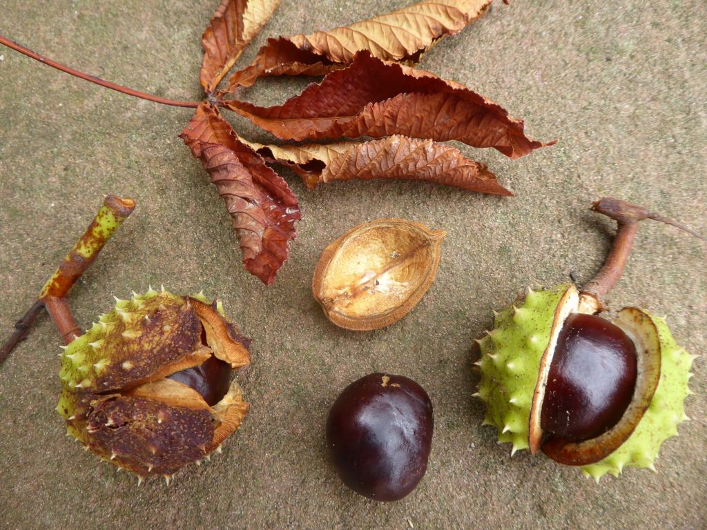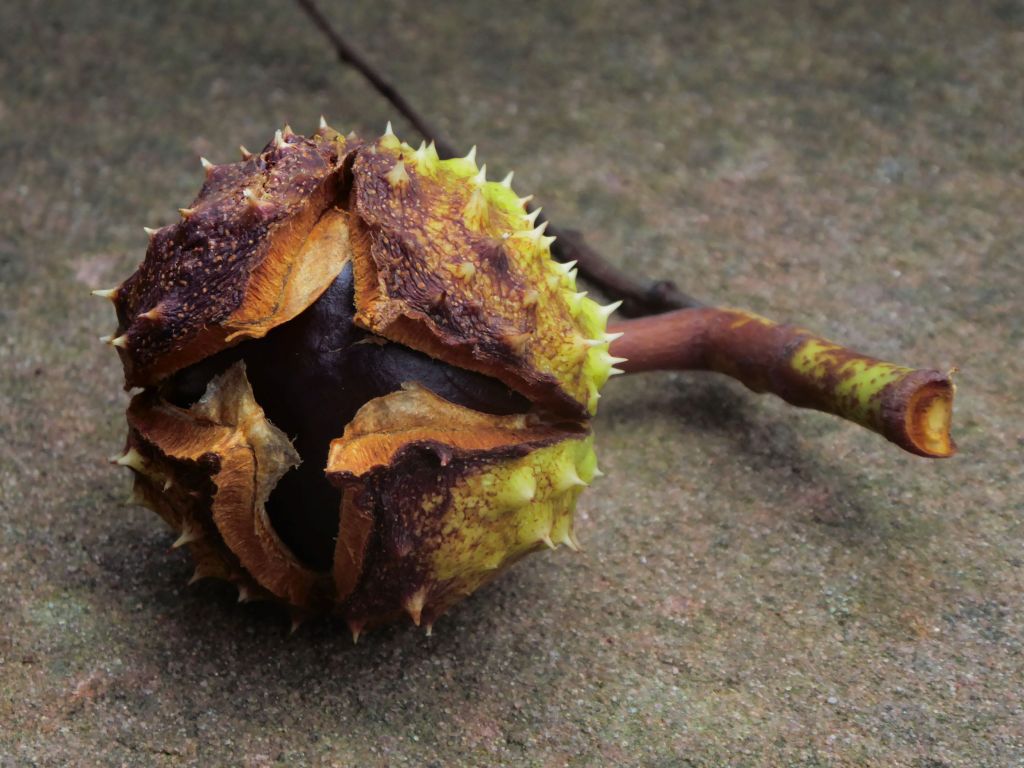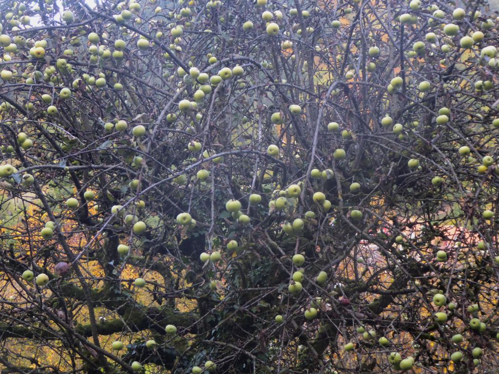Birnen, Äpfel, Walnüsse. Von allem viel zu viel, an den Bäumen, auf dem Boden. Der starke Wind tut sein übriges, und so werden uns etliche Früchte geradezu frisch vor die Füße geworfen. Wir müssen uns nur bücken, ein Picknick für den Spaziergang einzupacken wäre nicht nötig gewesen. Eigentlich sind wir hier nur gelandet, weil wir uns verfahren haben. Zu viel gequatscht, das Navi ignoriert. Mit der neuen Situation sind wir jedoch überhaupt nicht unglücklich. Es sind die ersten Herbsttage nach langen heißen Sommermonaten. Unerwartet großzügig breitet sich die ganze Fülle und Pracht der Jahreszeit vor uns aus. Noch dazu ist dieser Ort komplett entspannend. Alles ruhig am heutigen Sonntag. Menschen, die uns begegnen, grüßen lächelnd. Tiere, die uns begegnen – Esel, Schafe, Hühner – blicken uns stumm und freundlich an. Genau das richtige Ambiente für einen erholsamen, bunten Herbstspaziergang.