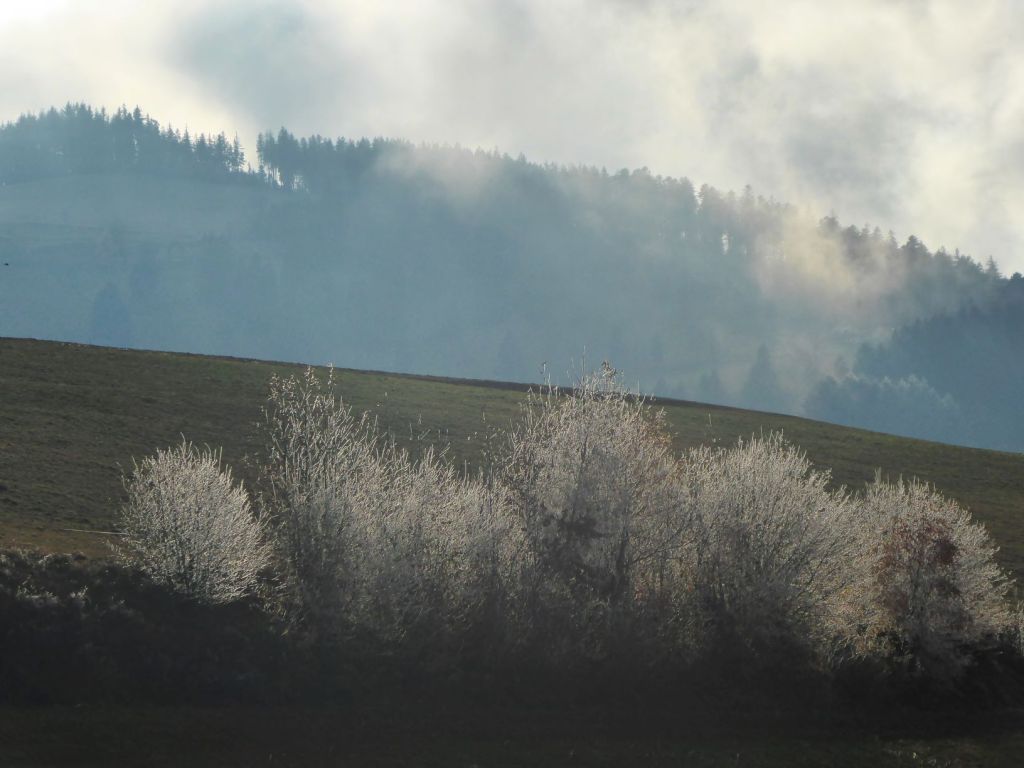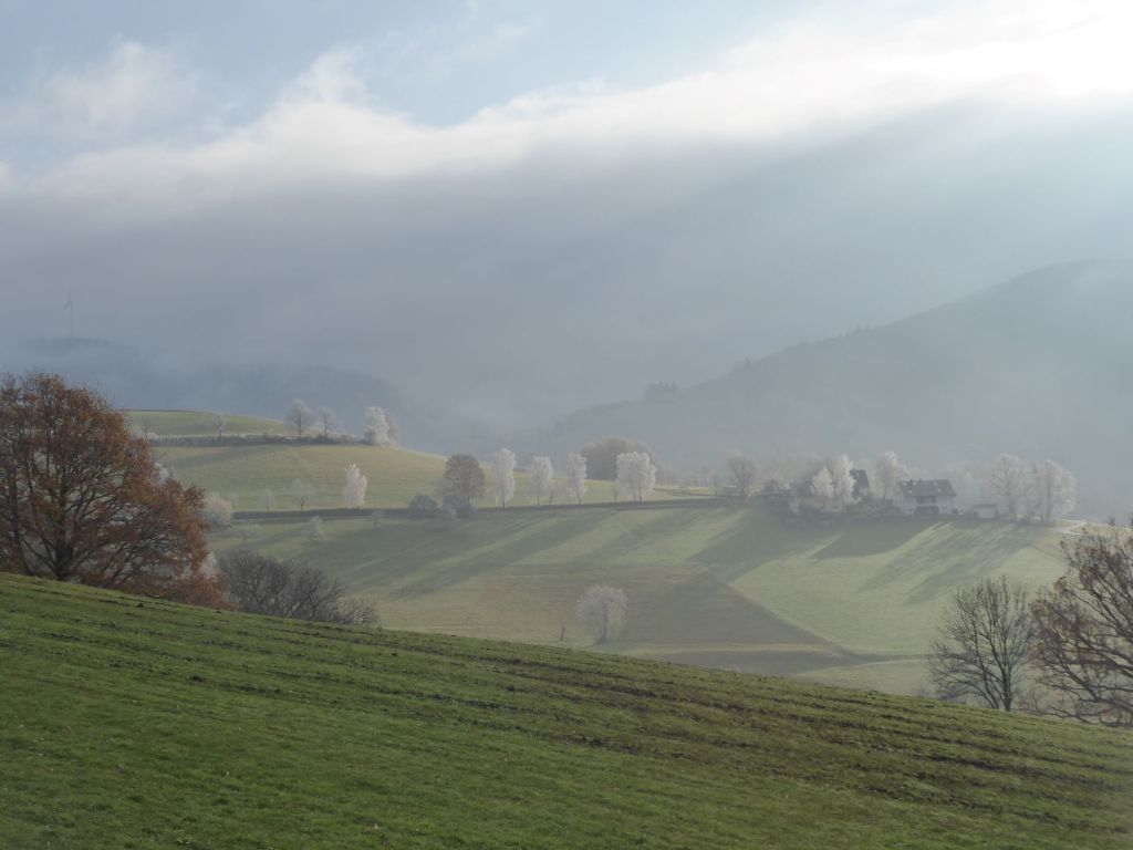 Das Jahr geht seinem Ende zu und auch am letzten Wochenende im November 2020 reist man coronabedingt noch nicht wieder fröhlich durch die Lande. Muss man ja aber zum Glück auch gar nicht. Die Schönheit der Natur ist unweit vor der Haustür entfernt zu finden. Und so führt dieser Spaziergang durch ein winterlich kaltes Horben. Horben ist eine kleine Gemeinde nahe bei Freiburg, unterhalb des Hausbergs Schauinsland auf einer Hochebene gelegen. Während es im Tal einige Grade wärmer zugeht, liegt hier oben auch am Nachmittag noch Reif auf den Ästen und Blättern. Sobald sich die Sonne ihren Weg durch die Wolken bahnt, beginnt es allerdings, zu tropfen. Schnell halten wir diese ersten Wintereindrücke bildArtig fest, bevor der Herbst wieder Oberhand gewinnt.