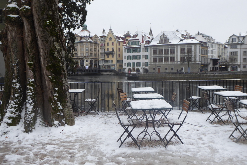 Luzern im Winter. Wenige Orte gibt es, die bei Kälte so schön zum Flanieren einladen, die auch bei grauer Witterung noch bunt und fröhlich wirken. An denen die Dezember-Stunden einfach so verfliegen. Lichterstrahlender Inseli Weihnachtsmarkt mit Feuerschalen, KKL Vorplatz mit Tannenbaum und Weihnachtsmusik, späte Schifffahrten und frühe Ruderboote auf dem Vierwaldstättersee, verkaufsoffene Sonntage vor Weihnachten, liebevoll und kenntnisreich sortierte Bücherei. Hier lässt sich überwintern.